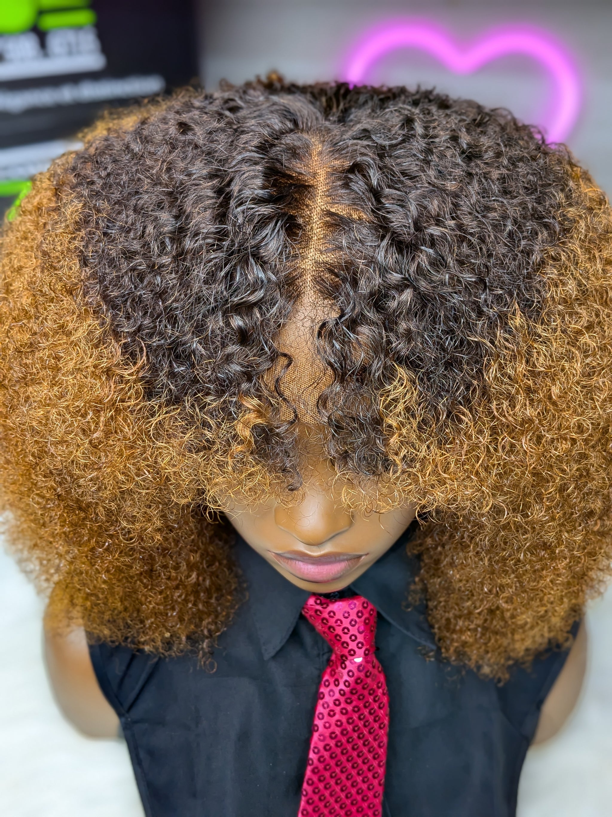 Voici « Afro Curly 300% Ombré T1B/30 ». Une perruque avec boucles afro curly, densité spectaculaire de 300% et couleur ombrée miel. Pour celles qui veulent un volume maximal et célébrer leur beauté afro avec style.