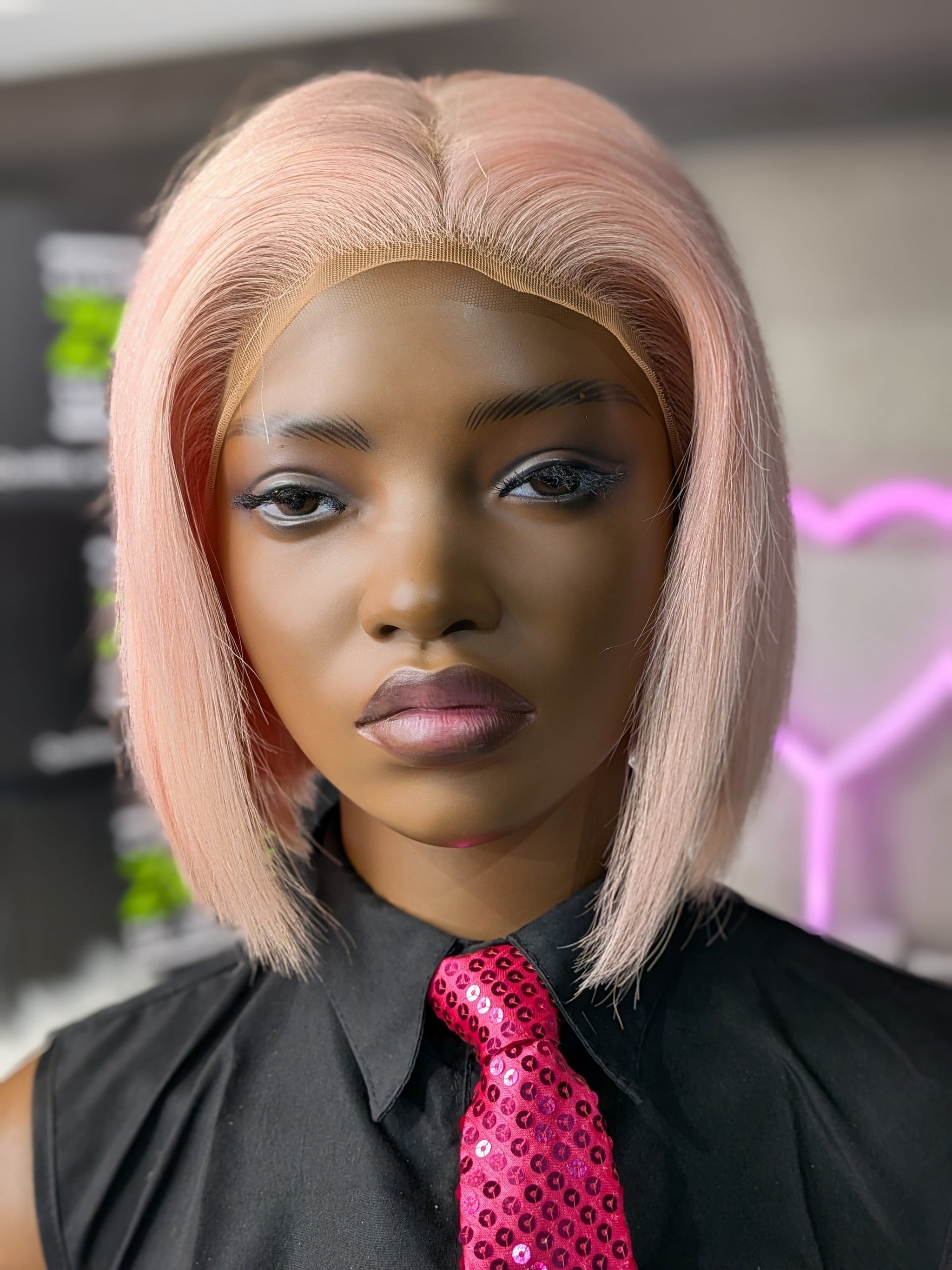 Voici « Bob Wig Pink ». Un bob audacieux avec lace frontal 13x4 dans une teinte pink vibrante. Pour celles qui osent se démarquer avec style et confiance.