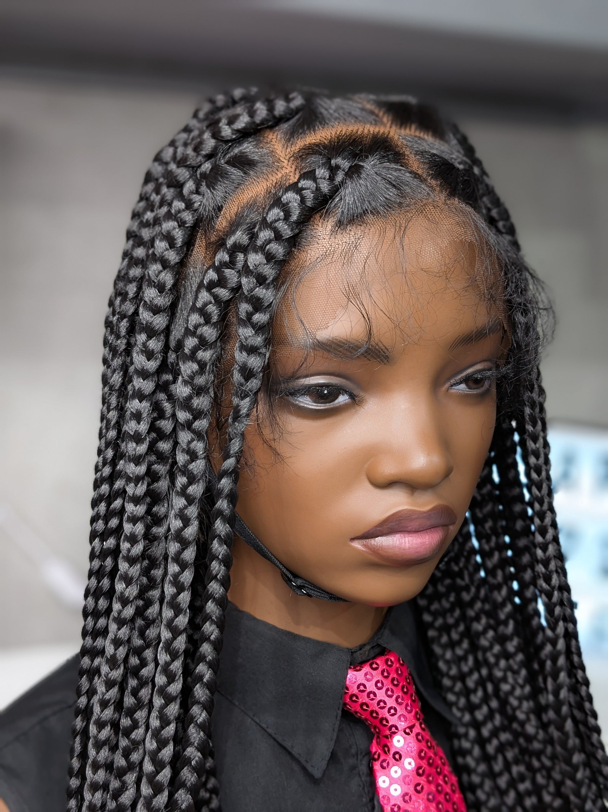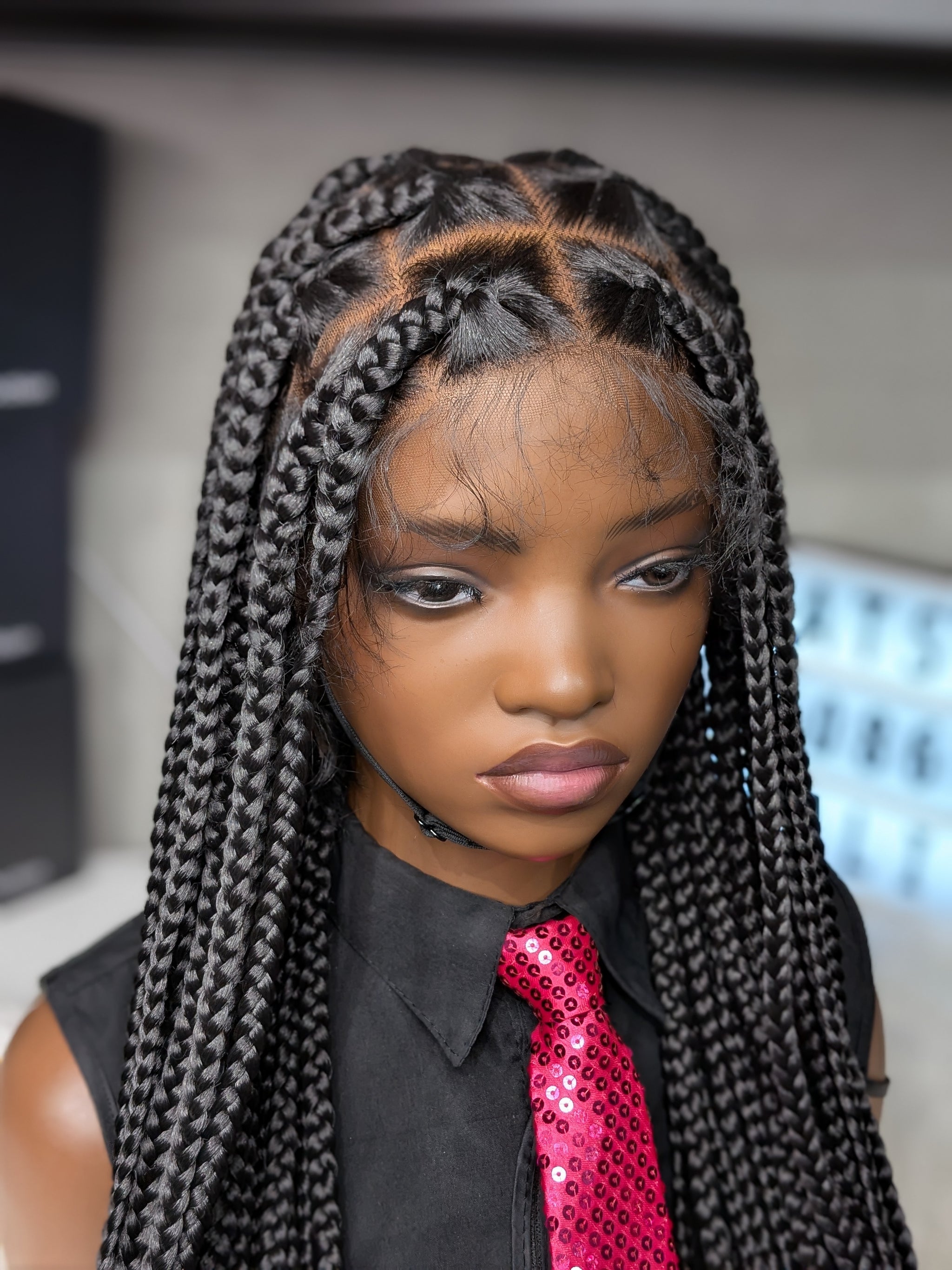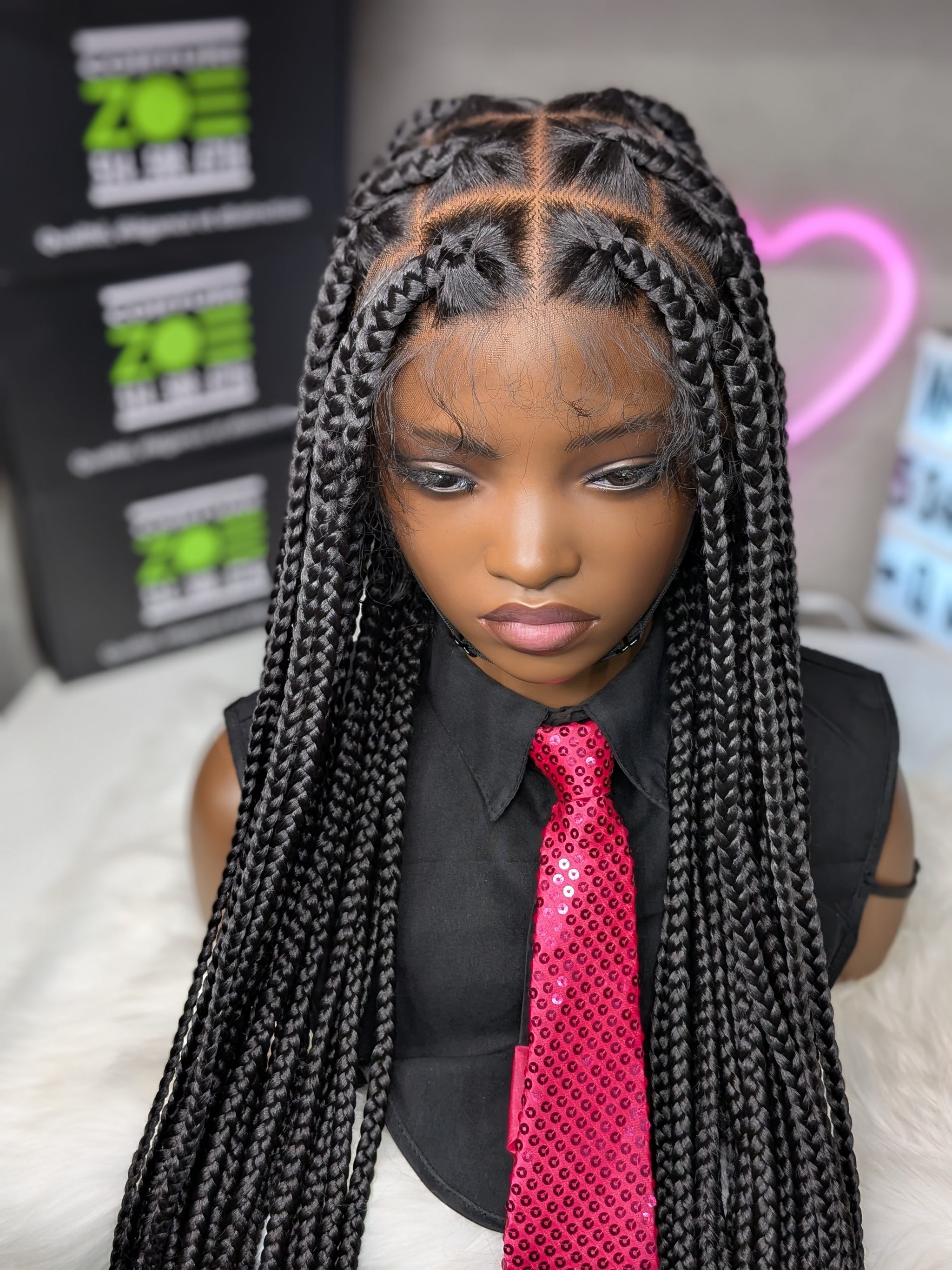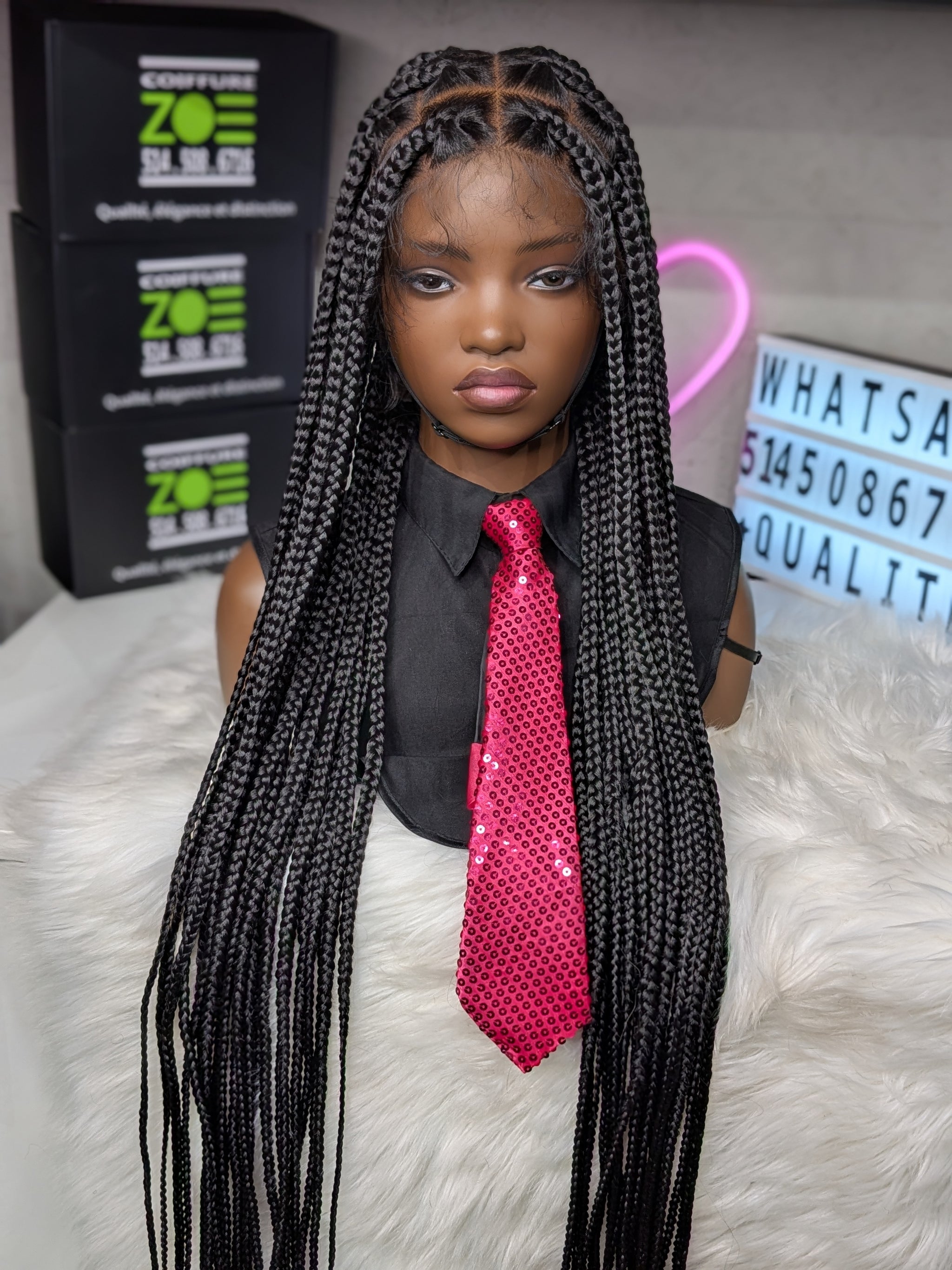 Voici « Tresses Full Lace 1b ». Une perruque tressée de 46 pouces dans une teinte noir naturel intemporelle. Pour celles qui veulent un look spectaculaire et authentique avec une longueur exceptionnelle.